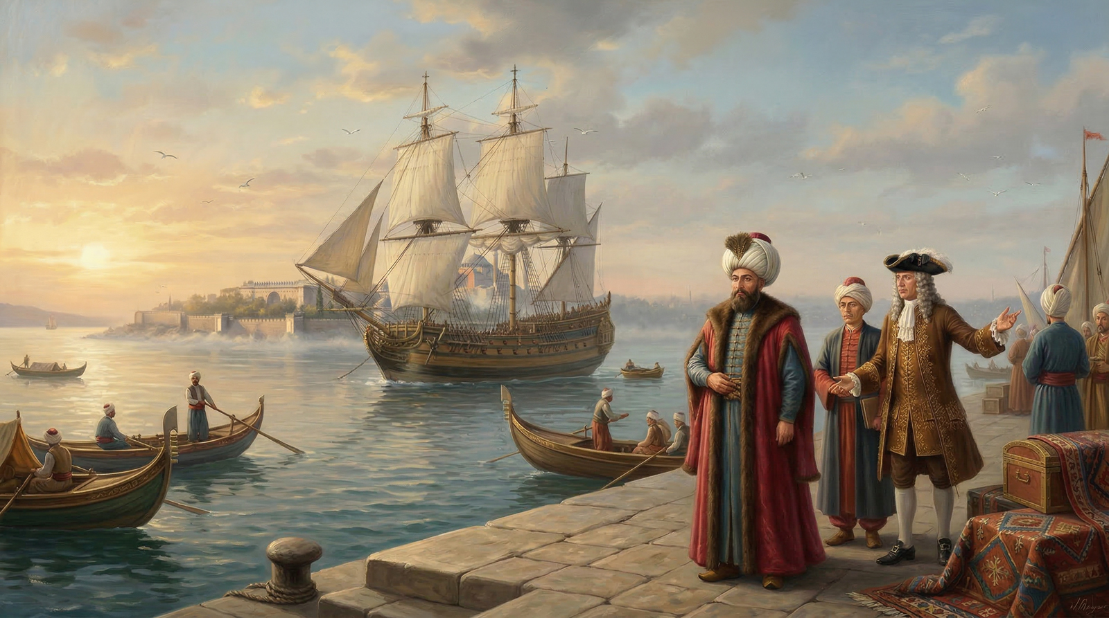 Départ : Le lundi 28 octobre 1720, nous quittâmes Istanbul à bord d’un navire marchand mis à notre disposition par l’ambassadeur de France, et nous prîmes la mer en direction de la ville de Toulon, que nous atteignîmes aux premières heures du vendredi 18 novembre 1720.